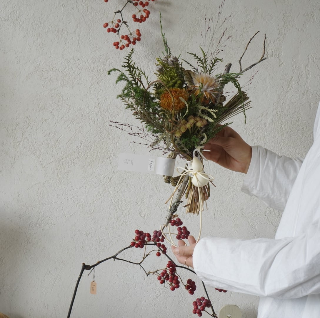取り外したあとは、花瓶に入れて花束として飾ったり、壁に掛けてスワッグとしてもお楽しみ頂けます。