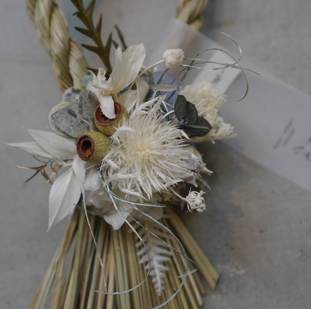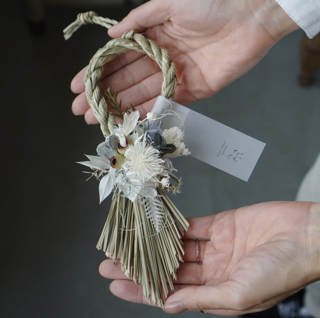 お花部分をワイヤーでしめ縄本体に付けていますので、お正月が明けましたら、後ろのワイヤーを外すと、お花部分をしめ縄本体から取り外す事ができます。
