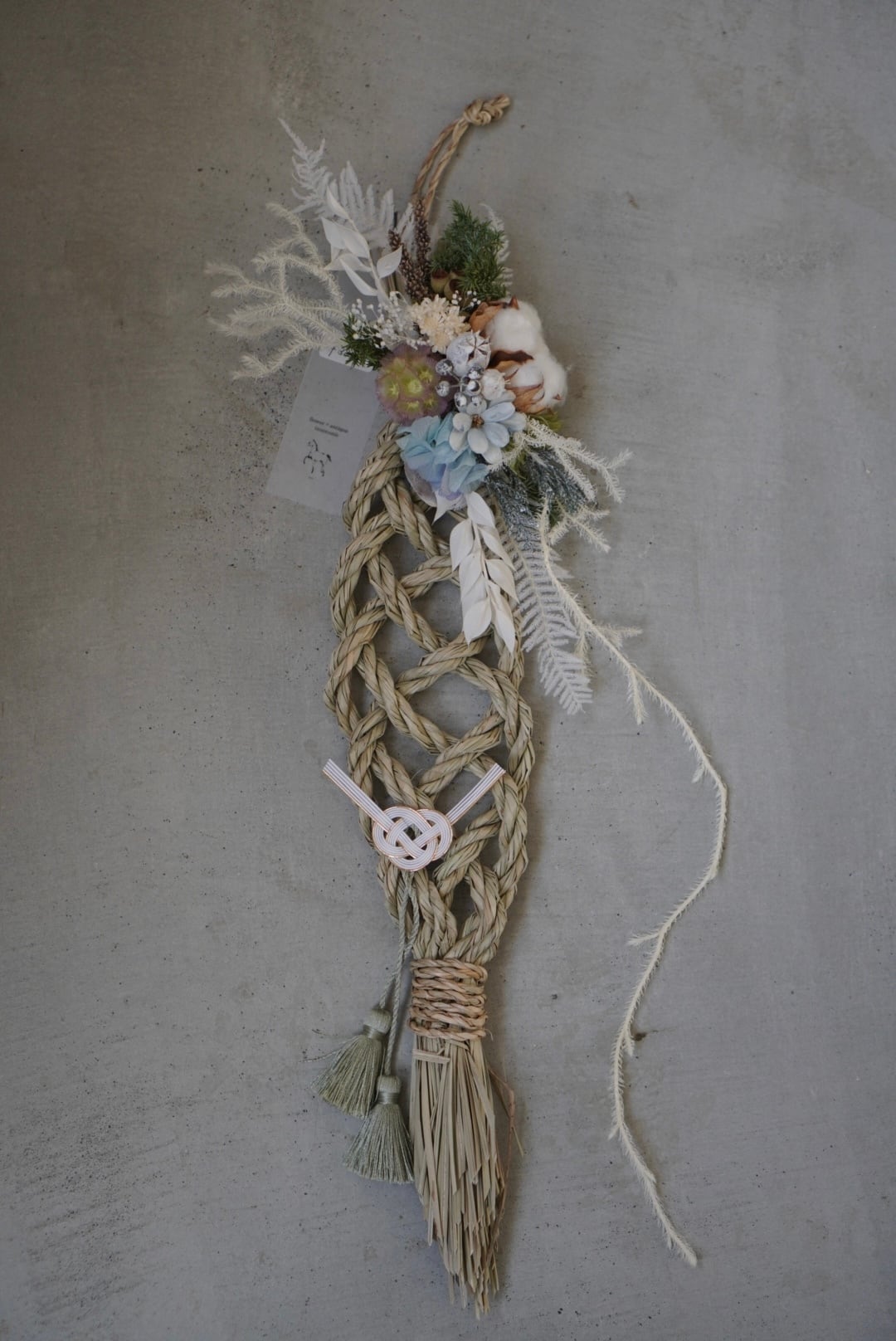 編み込まれた藁が特徴的な縦長のお正月飾りです。