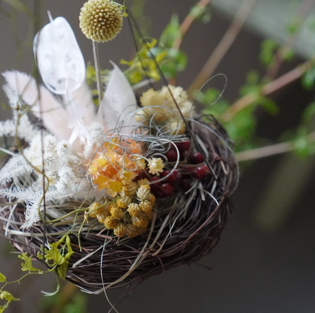 小さな鳥の巣のようなフォルムが愛らしい、