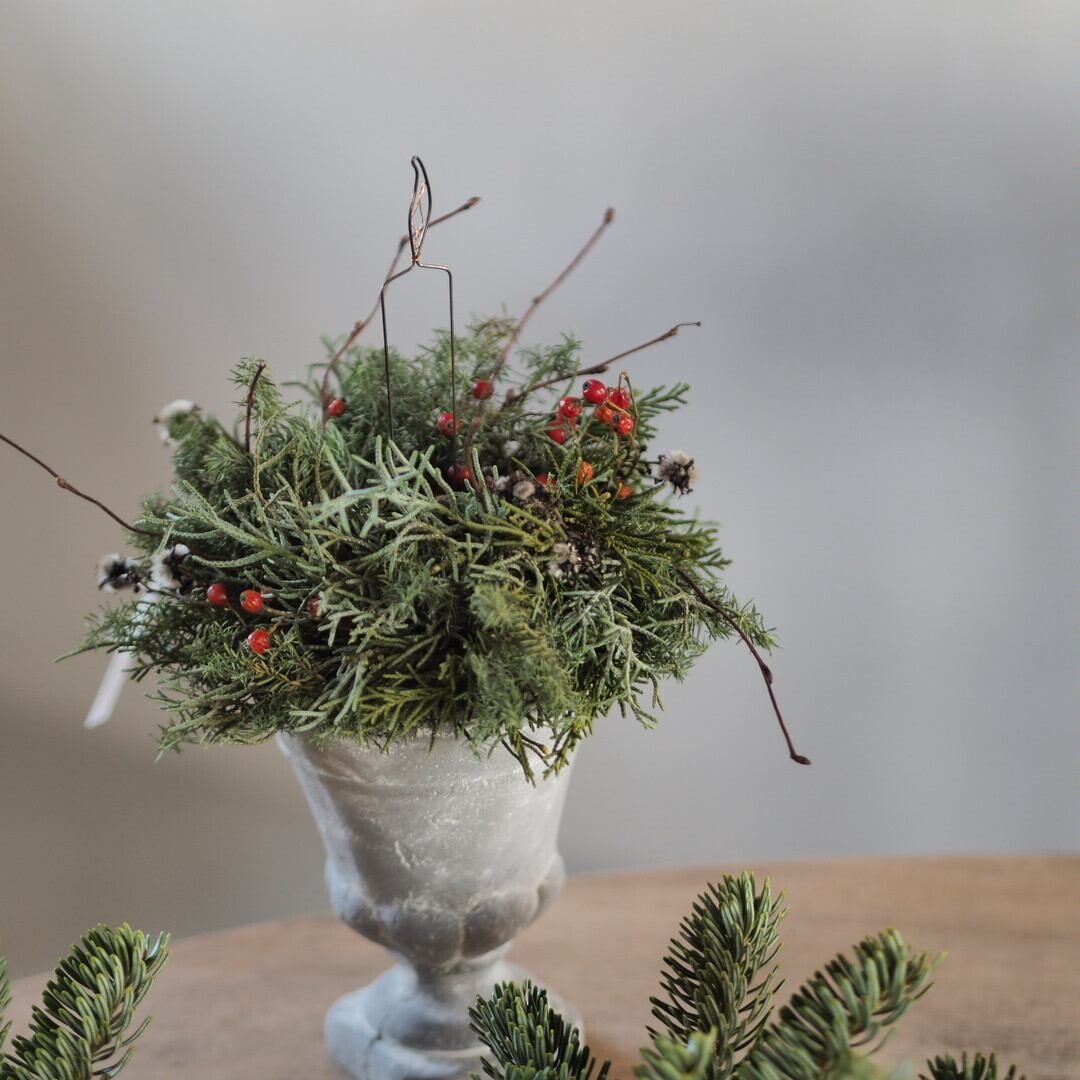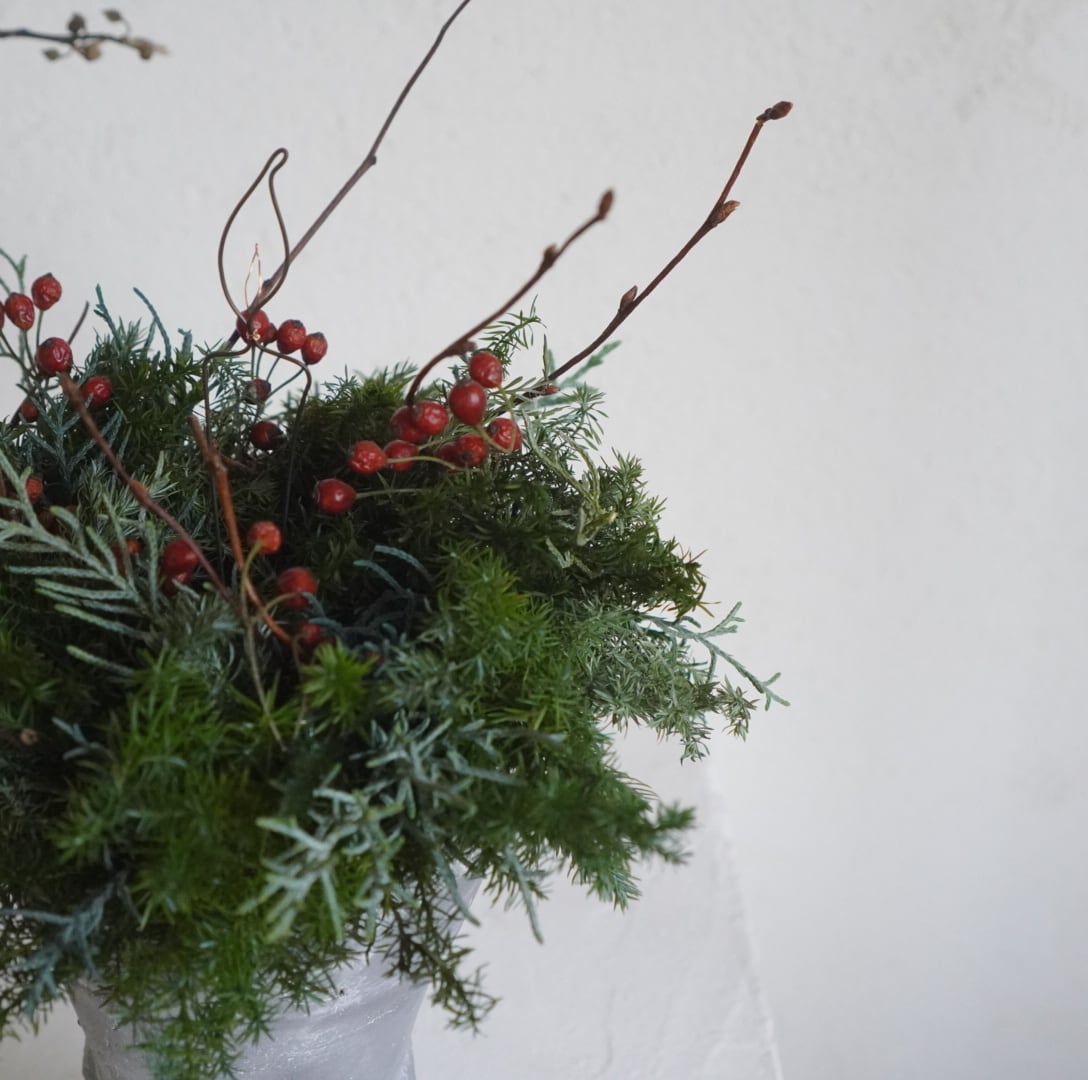 クリスマスの特別な飾りとしてテーブルやカウンターに置き、見て飾って季節を楽しむアレンジメントです。